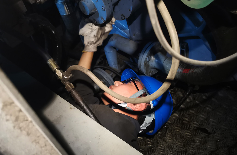 現(xiàn)場人員在檢查齒輪箱(龐延堃/攝)