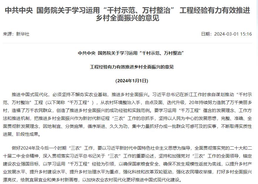 中共中央 國務(wù)院印發(fā)《鄉(xiāng)村全面振興規(guī)劃(2024—2027年)...