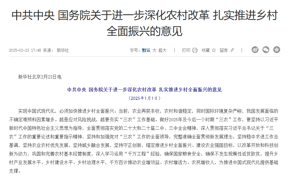 中共中央 國務(wù)院關(guān)于進一步深化農(nóng)村改革 扎實推進鄉(xiāng)村全...